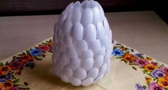 Пластиковые ложки весьма популярный товар, особенно в теплое время года, когда едешь на природу, их покупаешь с собой. Как говорится, весьма удобно в плане того, что покушал и мыть их не нужно, просто выкинуть в мусор. Но оказывается, ложки могут служить не только по прямому назначению, а именно покушать. Из них можно сделать довольно много полезных вещей, о которых я вам сейчас и расскажу. Для создания разнообразия из пластиковых ложек вам может понадобится: Красивая ваза. Интересный светильник. А делается это все весьма не сложно. Очень затягивает данное занятие, для тех кто любит что-то изобретать! А еще можно сделать красивые настенные часы: И понадобится дополнительный материал: При этом кстати не всегда их нужно красить, потому что они бывают в продаже разных цветов. Вот такие интересные идеи можно воплотить в жизни с помощью обычных пластиковых ложек.
