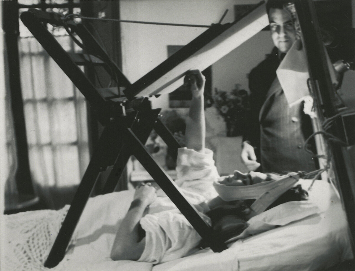 Именно ему, тогда уже маститому художнику, восстановившись после аварии Кало принесла показать свои рисунки. Их она делала, будучи прикованной к кровати. Как ей это удавалось, покажет один из сохранившихся снимков тех лет, который выставят в «Манеже».