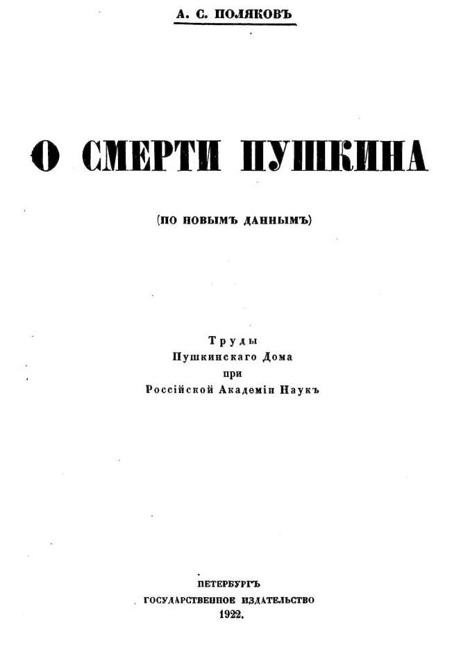 Существует версия что Пушкин был убит и что дуэль с Дантесом была преднамеренно спровоцирована. Много фактов подтверждающих эту версия дается в книге А. С. Полякова "О смерти Пушкина (По новым данным)" Труды Пушкинского Дома при Российской Академии Наук. 1922 год.