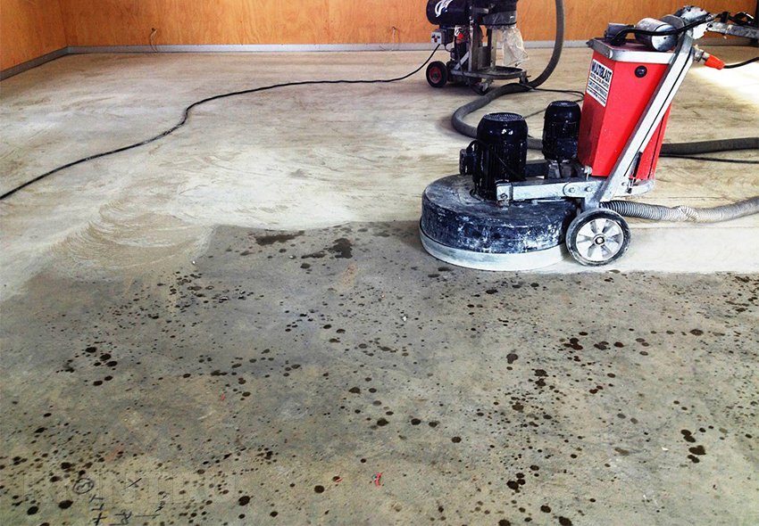 Как правило, в жилых помещениях поверх полов из бетона укладывают ламинат либо линолеум. Что касается торговых залов, гаражей и складов, то здесь отсутствие отделочного слоя объясняется практичностью бетонных полов. Для повышения их прочности и эстетичности выполняется шлифовка и полировка. Если в гараже сделать бетонный пол, то он будет пригоден к эксплуатации в течение долгого времени. Однако оседание наполнителя с крупным зерном и вытеснение песка снижает прочность верхнего слоя. Это приводит к быстрому изнашиванию пола и повышению степени поглощения влаги. С помощью шлифовки осуществляется равномерное удаление менее прочного слоя и оголение надежного среза, который практически не изнашивается и может прослужить десятки лет. Шлифовка бетона позволяет увеличить его адгезию, что имеет немаловажное значение для последующей чистовой заливки. Но следует учесть, что шлифовальные устройства не способны устранить большие дефекты. Приступать к шлифовке можно через 14 дней после заливки. Эт