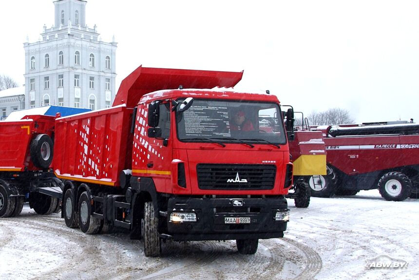 Выкатил Минский автозавод и два самосвала, один из которых действительно "супер". Это МАЗ-6516Y9-7521-000 с колесной формулой 8х4 - теперь самый "крутой" самосвал в линейке. Он получил 460-сильный двигатель Cummins ISG12. Его полная масса - 50.000 кг. Технически допустимая грузоподъемность - 33.000 кг. Объем платформы - 25 м3. Максимальная скорость - 85 км/ч.