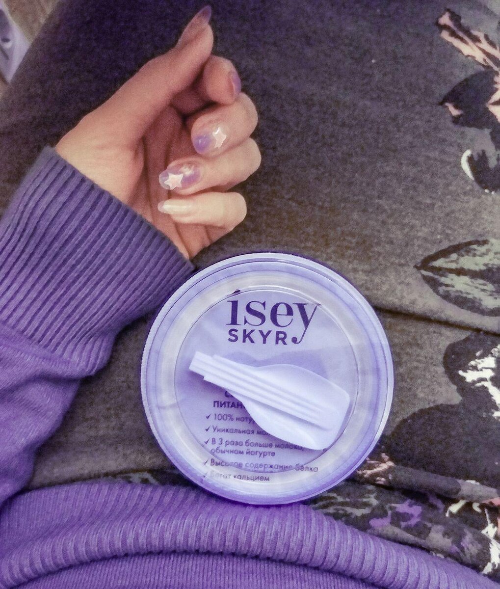Продукт достаточно новый. И вот, что говорит сам производитель: " Ísey Skyr – традиционный молочный продукт высшего сорта, единственный в своем роде в Исландии. Благодаря приятному насыщенному аромату и нежной кремовой консистенции он занимает особенное место среди молочных продуктов. Ísey Skyr - молочный продукт нового поколения для потребителей, заботящихся о своем здоровье." Что это? Скир — это традиционный исландский молочный продукт. Для его производства используется в три раза больше молока, чем для обычных йогуртов. Соответственно, в нем в 3 раза больше белка. В молочной продукции присутствует сывороточный протеин. Он считается незаменимым для поддержания мышечного каркаса человека. "Высокое содержание белка. Низкокалорийный. Нежная кремовая текстура. Натуральный"