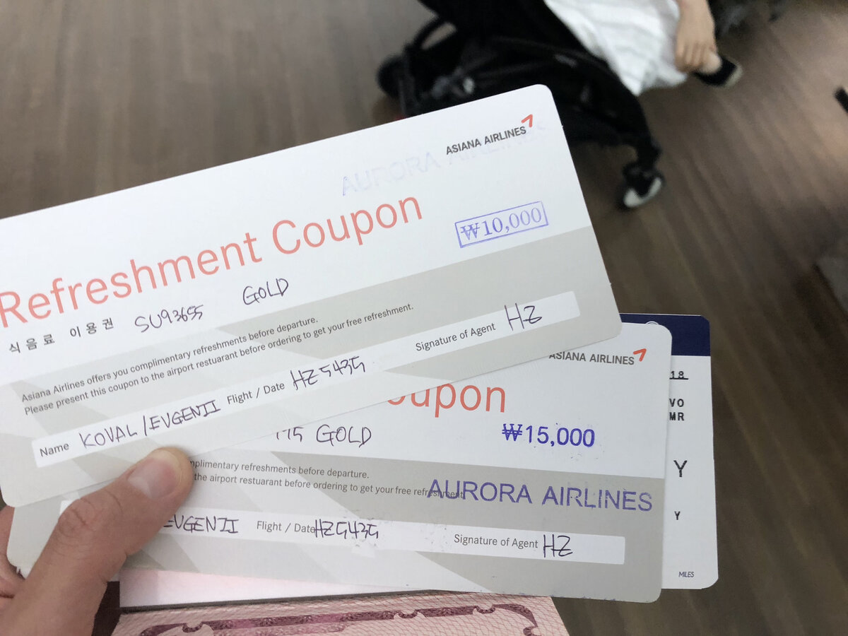 Если вы летите из аэропорта Инчхон (Южная Корея) ночным рейсом и являетесь золотым пассажиров SkyTeam и прочих альянсов, то ночью вам не повезло. Дело в том, что уже в 22:00 залы повышенной комфортности, дьюти-фри и кафешки закрываются в Инчхоне на лопату. Прям реально закрываются и работают только курилки. Открываются дьюти-фри в 6 утра. Авиакомпании своим пассажирам которые имеют статусы уровня: голд и платина даёт компенсацию в виде купона на 25 000 ₩ (~1400 ₽). Из работающих кафе лишь только Старбакс небольшого размера, где можно купить: банан, печеньку, воду и наверное кофе. Не стал тратить купоны, так как не люблю Старбакс. Но не расстраивайтесь, в аэропорту есть бесплатные зоны для отдыха, на верхнем уровне.