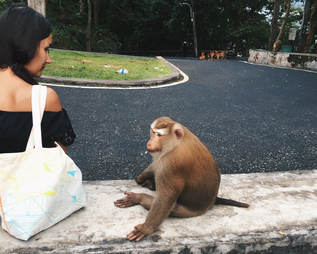 Место номер один, место которое точно запомнится. Если вы шарите инглиш лэнгвич 😃, то уже поняли, что пойдет речь о «Холме обезьян». И так, собираясь сюда, нужно запомнить несколько правил. Первое, приезжать сюда лучше утром, пока светло и если вы на байке, то сможете доехать до самого верха (После 16:00 подниматься можно только пешком, а идти там в гору ого-го). Второе, при встрече с обезьянами старайтесь вести себя спокойно и не улыбаться, улыбка для них – оскал, и они могут начать агрессировать. Третье, крепко держите в руках свои принадлежности, а лучше вообще спрятать, им не доставит особого труда выхватить у вас телефон из рук, как у нас выхватили бутылку с водой (обезьянка еще открыла крышку и начала пить с горла!). Четвертое, в заповеднике продаются орехи, которыми можно кормить обезьян, но предупреждаем, дав орешек одной обезьянке, вы рискуете оказаться окруженными толпой обезьян, которые крайне непредсказуемы. И последнее, обезьяны могут вас поцарапать, а они переносчики различных заболеваний, поэтому лучше приезжать сюда не с голыми ногами. Кстати, вид с горы ну очень красивый, поэтому дойти до конца стоит обязательно!