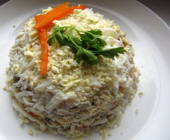 Печень – довольно специфический продукт, который любят не все. Предлагаю вам рецепт салата, который уходит с праздничного салата одним из первых. Если вы не знаете, что вкусного приготовить с печении, то этот рецепт точно придется вам по душе. Что нужно взять Для салата берите только свежие и качественные продукты. Только это обеспечит неповторимый вкус. Для салата возьмите: Печень лучше брать свежую, а не мороженную. Если вы взяли именно замороженный вариант, то размораживать его следует в холодильнике сначала, а потом достать и доразмораживать в условиях комнатной температуры. Из зелени лучше взять именно петрушку и зеленый лук. Как приготовить Печень предварительно помойте и очистите от пленок. Отварите в подсоленной по вкусу воде. Ее мы натрем на крупной терке. Лук очищаем и режим небольшими полукольцами. Мы заливаем ее уксусом и настаиваем на протяжении 20-30 минут. Салат выкладывается слоями. Сначала положите лук, а сверху печен. Каждый из слоев обильно промазывается майоне