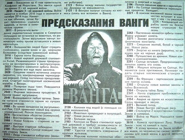 Сколько раз вы слышали фразу "Ванга предсказывала" ? Может быть она не предсказывала вовсе ? Я решил разобраться в этом, и вы будете шокированы от того как было на самом деле! Ванга родилась в Болгарии в 1911 году. Легенда гласит что в возрасте 12 лет ее подхватил смерч и подкинул на 100 метров тем самым забив глаза и оставил её слепой, но в замен она получила пророческий дар. Вы сейчас удивитесь но были найдены полицейские архивы которые говорят нам что именно в этот день именно в этом городе была изнасилована 12 летняя девочка и насильники выкололи ей глаза чтобы она не могла их опознать. Однако версия – со смерчем выглядят неправдоподобно. Болгария не Канзас – там не бывает таких смерчей. Кроме того, это маленькая страна, где обо всех все известно. Поэтому история с насильником рано или поздно вылезла бы наружу! Малоизвестным фактом является и то, что у Ванги были приемные дети. Подпишись если хочешь узнать продолжение истории, и почему ванга врала про свой дар!