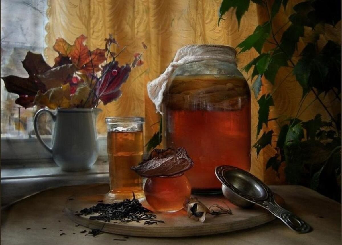 Комбуча, или известный нам со времен СССР «чайный гриб», в этом году внезапно и триумфально вернулась в моду и даже стала ЗОЖ-трендом. На фоне снижающихся продаж своей газировки компания Pepsico купила крупнейшего в США производителя комбучи — да-да, все настолько серьезно, рынок комбучи в Америке оценивается в 556 миллионов долларов. Мы же расскажем, как приготовить дома комбучу из... кофе. Но для начала немного истории. Что такое «чайный гриб»? Помните, наши мамы и бабушки держали на кухнях банки и кастрюли с какой-то странной субстанцией под марлей? «Гриб» кормили сладким чаем, а взамен он «отдавал» напиток со вкусом яблочного кваса. Закваску «чайного гриба» передавали соседям, друзьям, родственникам, а получившийся чай хорошо освежал летом, вместо лимонада или кваса. Это был ферментированный чай. Чайный гриб — результат взаимодействия уксусных бактерий и дрожжей. Свое название в России он получил из-за слизистой шапки. В Германии его называют «чудесный гриб», во Франции — именем