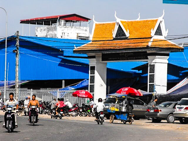 Люблю ходить по местным рынкам, все фрукты и овощи там намного свежее, чем в магазинах, разнообразие больше, цены практически такие же, как в супермаркетах. А еще рынки очень колоритны, сразу погружаешься в культуру региона, многие аспекты жизни местных жителей видны как на ладони. Сегодня расскажу про рынок в Сиануквиле. Называется он Phsar Leu, расположен на Makara street: Вход на рынок: Рынок крытый, так что внутри довольно-таки душно и жарко, поэтому лучше всего идти с утра, работает он часов с 7-8, а около 3 дня пустеет. Первое впечатление было ужасным, как-будто тебя вырвали из безмятежного спокойствия и бросили в клоаку. Очень много народа, кругом шум, очень грязно. я не преувеличиваю, ОЧЕНЬ. Лучше идти в закрытой обуви. Из-за жары все быстро портится, поэтому морепродукты, мясо постоянно поливают, и вся эта жидкость льется под ноги, а то и прямо на ноги. Мимо мясных рядов (да и морепродуктов) лучше не проходить, очень уж сильный запах. Хотя соблазн отведать такие огромные креве