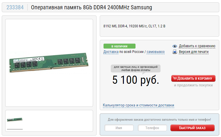 Оперативная память - больная тема последней пары лет. Ещё недавно 8-гигабайтная плашка DDR3 продавалась дешевле 3000 рублей, а сейчас, даже несмотря на спад дефицита, цены стартуют от 4 тысяч рублей за самую простую DDR4. И разница в поколениях, поверьте, тут ни при чем. Но собрались мы сегодня не для скорби по рынку оперативной памяти, а для того, чтобы обсудить самую популярную плашку DDR4 памяти. Итак, встречайте: 8Gb DDR4 2400MHz Samsung (M378A1K43CB2-CRC)! Самая простая плашка одноранговой памяти на микросхемах, построенных на базе 18 нм DRAM-кристаллов Samsung C-Die с довольно низкими частотами уже давно находится в топе продаж всех "железных" магазинов России. Дешева ли она? Нет!