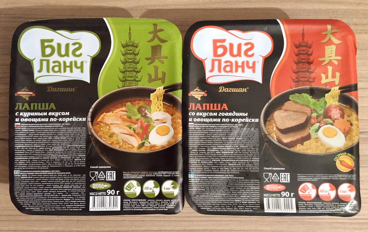 Увидел как то на полке магазина новый вид лапши быстрого приготовления, да еще и по скидке и не удержался - купил попробовать. Всего было два вкуса. Купил оба, чтобы сравнить и понять, какой из них будет вкуснее. Состав Состав у них схожий, отличается разве что суповая основа, которая не обошлась без усилителя вкуса, что прискорбно. Хоть и есть пометка в составе, что все пищевые добавки разрешены к применению органами и учреждениями федеральной службой по надзору в сфере защиты прав потребителей и благополучию человека. Может и разрешены, но ничего полезного в них нет. Оценка: 2/5. Вкус Вкус вполне ожидаем и неплох. Особо ничем от обычного биг ланча не отличается, разве что набором специй. Со вкусом говядины понравилось больше, ибо там поострее и вкус от этого чувствовался насыщенней. Вполне неплохо в итоге. Оценка: 4/5. Цена По скидке обошлись упаковки всего по 25 рублей, что вполне адекватный ценник за такую немаленькую (90г) пачку лапши с овощами, специями и вилочкой в наборе. Оценк