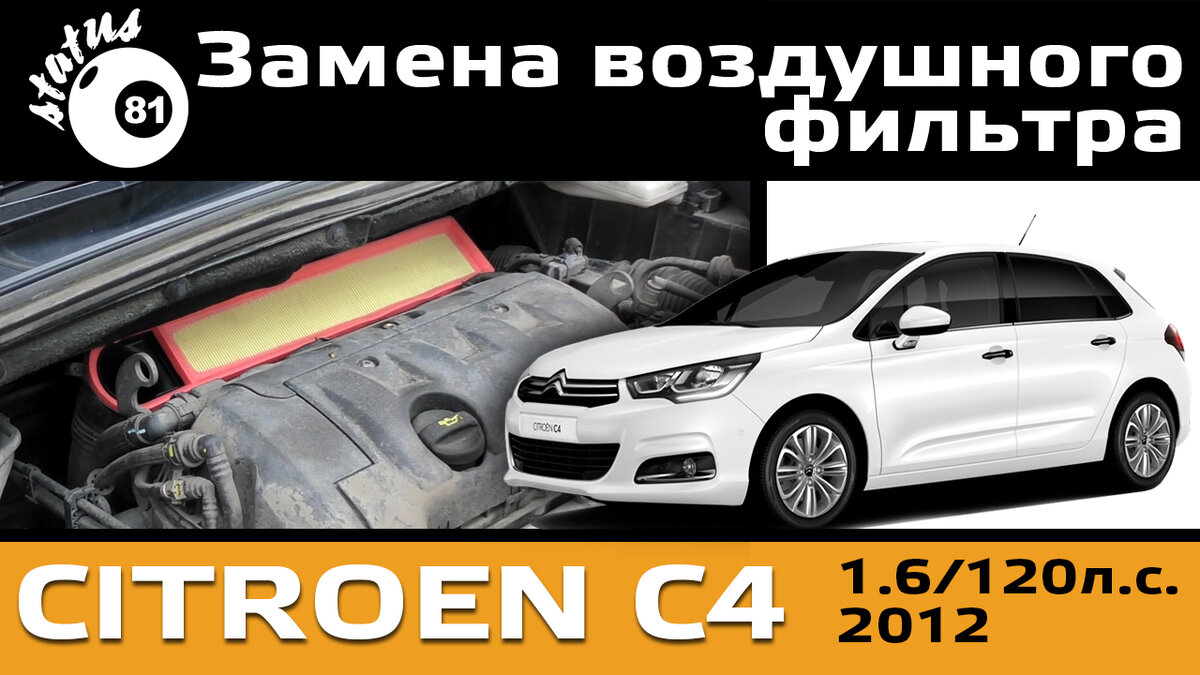 В ролике Вы увидите как самостоятельно заменить воздушный фильтр на автомобиле Ситроен С4 (Citroen C4) 2012 г.в. с двигателем 1.6 / 120hp. Если Вы хотите показать как выполняются те или иные работы на Вашем автомобиле - пишите в комментарии под любым видео и следующий ролик может быть снят вместе с Вами. Лучшая благодарность за видео - твой лайк, репост и подписка на канал. Большое спасибо за просмотр!