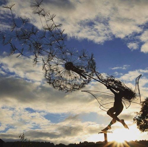 Скульптуры фей из стальной проволоки, созданные художником Робином Уайтом