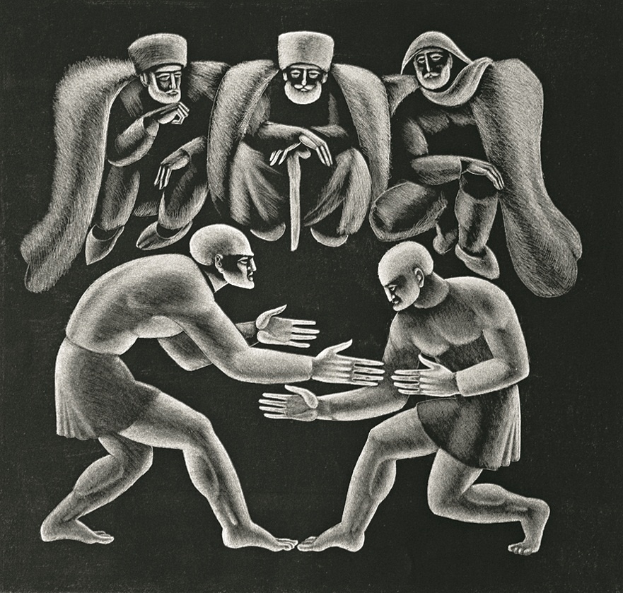 Адыгэбэнач – традиционная борьба адыгских народов. Культивировалась в нескольких основных разновидностях, наиболее популярными из которых являются борьба «на руках», «в обхват», «на поясах» и борьба вольного стиля с произвольным захватом за одежду. В борьбе на руках соперники хватали друг друга за руки немного выше локтей и в таком положении вели схватку. Правилами не разрешалось выполнять захваты руками за голову или ноги, зато допускался захват двумя руками одной руки противника при броске через себя. Для победы необходимо, оставшись стоять на ногах, бросить соперника на землю спиной вверх. Столь оригинальный способ определения победителя, когда своего соперника нужно бросить на грудь, а не на спину, объясняется тем, что в боевых схватках человек, лежа на спине, еще в состоянии оказывать достойное сопротивление противнику, действуя руками и ногами, а лежа на груди он лишен такой возможности. Кроме того, в таком положении человека легче связать, если его брали в плен. Для победы в ост