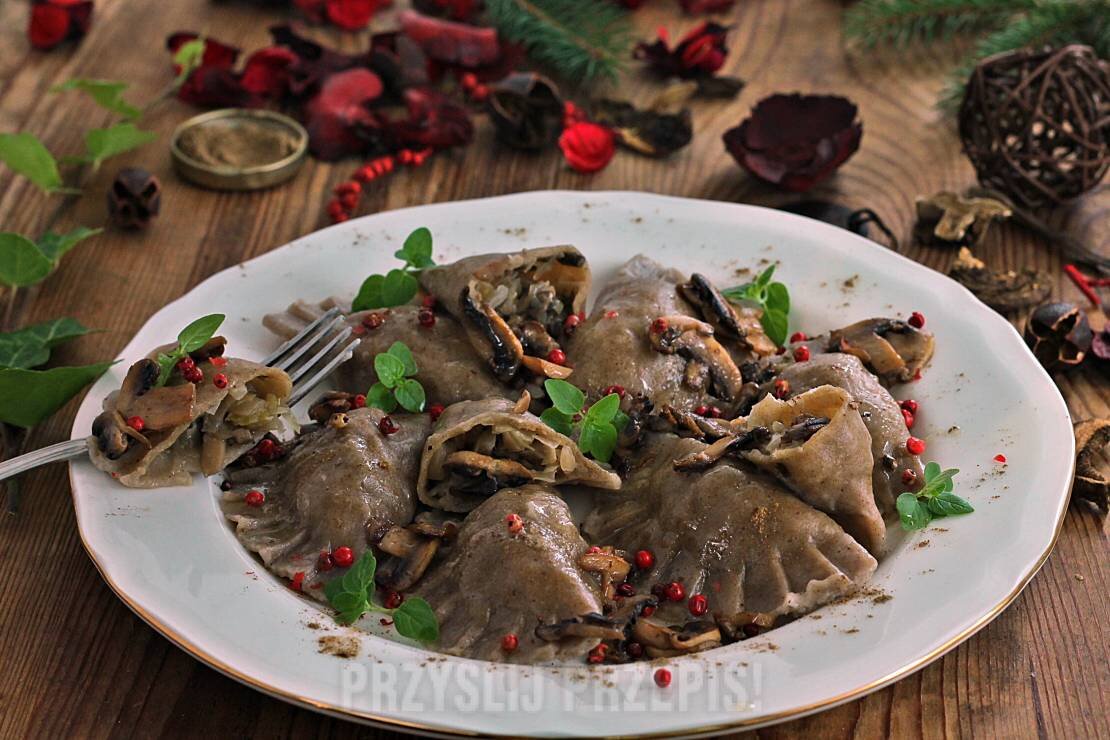Вареники с измельченными лесными грибами. Чтобы сделать такой порошок, нам нужна кофемолка. Я рекомендую такой порошок хранить в банке и добавлять его в соусы, пельмени. Пельмени обязательно попробуют на вкус. Идеально в канун Рождества. В моей семье каждый год мы делаем пельмени, некоторые с порошком, а некоторые без. Нет ничего лучше, чем домашние пельмени, которые пахнут грибами и лесом. На 4 порции за 60 минут ! Ингредиенты тесто: 250 г пшеничной муки 1/3 чайной ложки соли 2 столовые ложки рапсового масла 2/3 стакан горячей воды 2 столовые ложки измельченного в порошок горсть сушеных грибов начинка: 70 г квашеной капусты 60 г маленьких грибов 1 чайная ложка грибного порошка соль, черный и красный перец 2 душистого перца 2 лавровых листа 1 столовая ложка масла Способ приготовления рецепта: 1. Фарш: Положите капусту в кастрюлю, добавьте листья лавра, душистый перец, залейте водой достаточно, чтобы покрыть капусту, и варите на медленном огне, пока она не станет мягкой. После приго