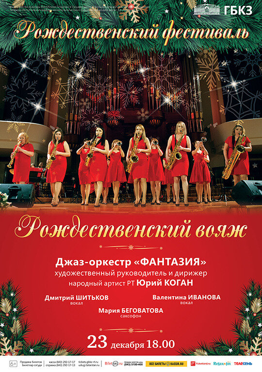 В Государственном Большом концертном зале им.С.Сайдашева состоится открытие IV Рождественского фестиваля, в котором прозвучат популярные композиции великих композиторов мира. 23 декабря в Государственном Большом концертном зале им.С.Сайдашева состоится открытие IV Рождественского фестиваля, рассказали в Министерстве культуры РТ. Казанский джаз-оркестр «Фантазия» представит вниманию зрителей программу «Рождественский вояж». В рождественской музыкальной программе прозвучат популярные эстрадные, джазовые и классические композиции Штрауса, Дунаевского, Денца, Уэббера, Мийо, Гудвина, Артемьева и др. «Основной идеей нашего «вояжа» стало символическое путешествие по разным странам и музыкальным стилям. Прозвучат сочинения композиторов США, Испании, Австрии, России, Франции и других стран – от легкой классики до сложных джазовых произведений. Уже самое начало концерта – увертюра из кинофильма «Дети капитана Гранта» – настроит слушателя на тематику кругосветного путешествия. Подбор сочинен