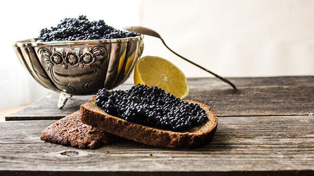 Черная икра – деликатес роскошный и дорогой, хотя в царской России его употребляли как закуску к водке, заворачивали в блины. Высокую культуру употребления продукта создали французы – они подавали его в маленьких пиалках и строго к игристому вину сорта Брют. Вы можете делать блюда с черной икрой к праздничному столу или просто выкладывать икринки в небольшие емкости, которые нужно ставить на заполненное колотыми кусками льда блюда. Считается, что такая подача позволяет поддерживать оптимальные температурные показатели продукта, способствует максимальному раскрытию вкусового, ароматического букета.
