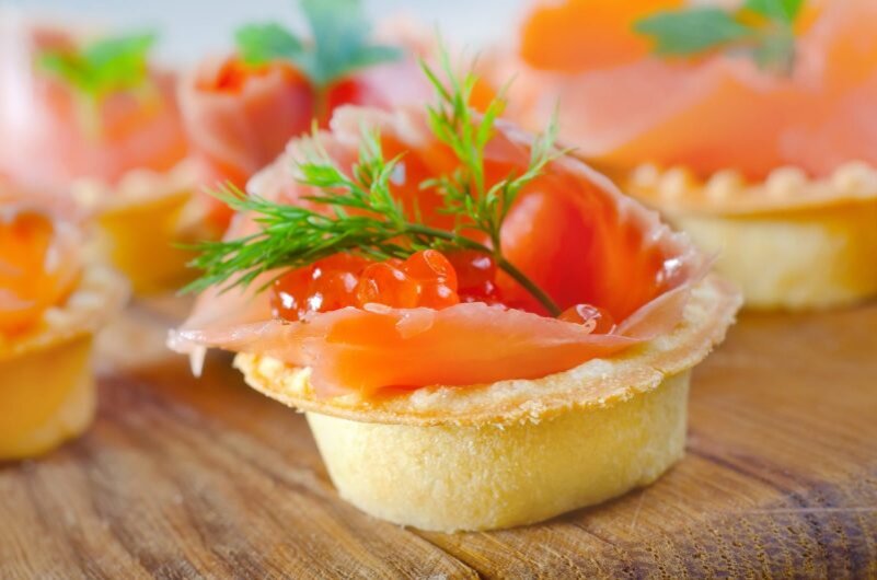 Тарталетки с красной икрой – быстрая, всегда актуальная закуска для праздничного стола. Сделать ее можно буквально за 20 минут, корзинки покупайте готовые. Есть рецепты попроще, есть более трудные – вам остается только выбирать. Основные ингредиенты Чтобы сделать вкусные тарталетки с красной икрой, возьмите: