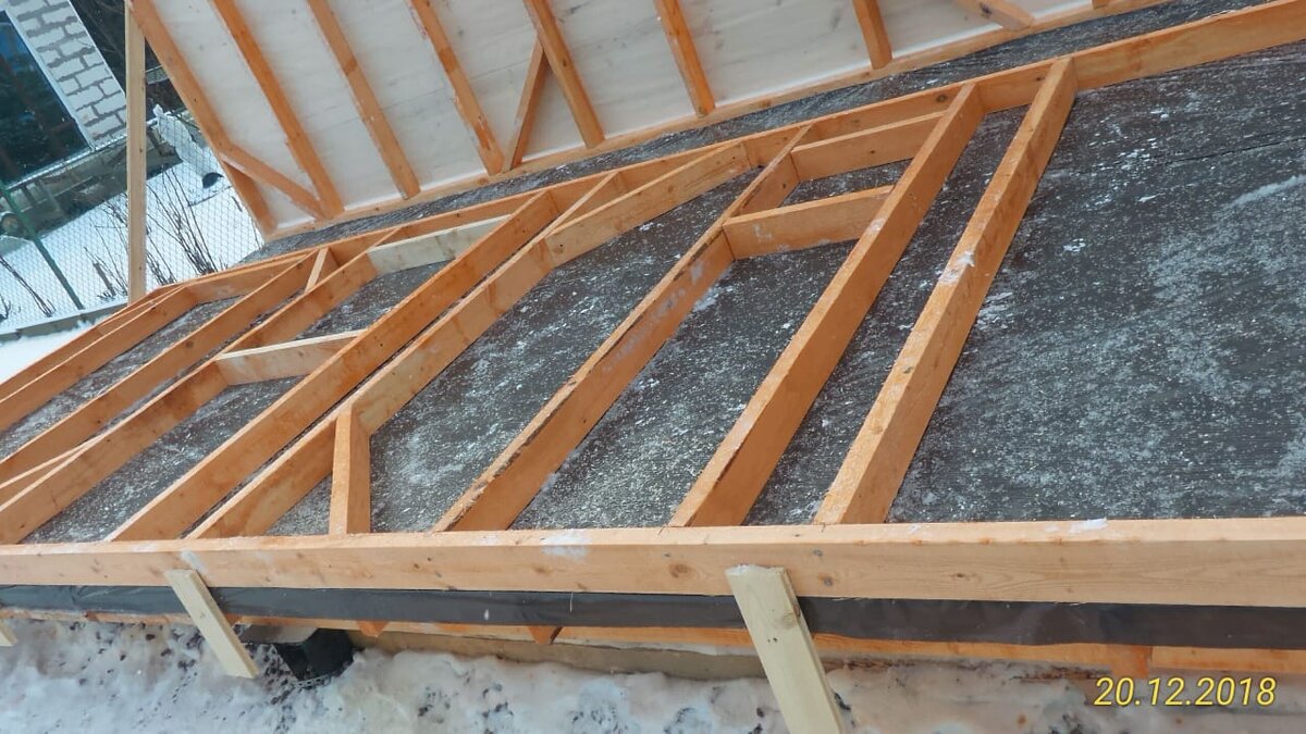 Итак, сегодня второй день наша бригада работает на объекте. Первый день сборки описан здесь Сначала стена собирается на полу -собирается каркас, кладётся пароизоляция, монтируется наружная обшивка: Затем стена в собранном виде устанавливается на место: Предрекая возможную критику по поводу укосин - я напомню, что мы строим небольшое строение, ему не требуются длинные укосины. В случае с маленькими пролётами и небольшим весом маленькие но частые укосины работают на жёсткость гораздо эффективнее. На бОльших и более сложных строениях (например, бани с мансардой) укосины мы внахлёст минимум на одну, как правило на две доски: Одним из следующих объектов будет баня 6*6 с мансардой, постараемся там сделать фото укосин. *Вот уже две стены установлены: Следующими этапами будет выполнен монтаж оставшихся стен, стропил, перегородки, кровли, утепление, расскажу об этом завтра. Продолжение Подписывайтесь на канал, ставьте лайки, чтобы не пропустить следующую часть обзора. Спасибо за внимание!