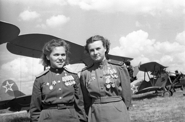 Женский авиационный полк Из-за сугубо женского состава, а также имени командира мужчины-летчики иногда называли 46-ой полк «Дунькиным». При таком шутливом названии девушки-летчицы умели внушить врагу настоящий ужас. Именно фашисты назвали этих бесстрашных асов в юбках «ночными ведьмами». Обучались летчицы в Архангельске. 27 мая 1942-го женский полк прибыл на фронт в составе 115 девушек, которые занимали в боевом формировании абсолютно все должности. Ночными «ведьмы» звались потому, что входили в 218-ую ночную бомбардировочную авиадивизию и совершали вылеты только ночью. Боевое крещение барышни получили через две недели по прибытии на фронт, 12 июня. За подвиги, которые сов