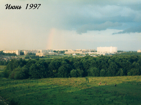 Когда мы долгое время живём в одном доме на одной и той же улице в одном и том же городе, мы порой перестаём замечать, как меняется мир вокруг нас. Фотографии помогают нам запечатлеть окружающую нас обстановку и заметить даже самые мелкие детали, меняющие действительность. В 1997 году у меня была обычная плёночная «мыльница», поэтому фотография с видом с балкона сохранилась лишь в единственном экземпляре. В тот год мы переехали в новый дом на отшибе города. С балкона открывался шикарный обзор на поле, лес, из-за которого выглядывал пруд, и лишь вдалеке виднелись многоэтажки. Полянку под окнами мальчишки сразу облюбовали для спортивных игр. Сначала натягивали там сетку и играли в волейбол, а затем поставили ворота и стали устраивать футбольные баталии. Этот же импровизированный стадион собачники использовали как площадку для выгула своих питомцев. Следующий вид с балкона я смогла запечатлеть лишь спустя десять лет, когда у меня появился цифровой фотоаппарат. Со временем мальчишки с
