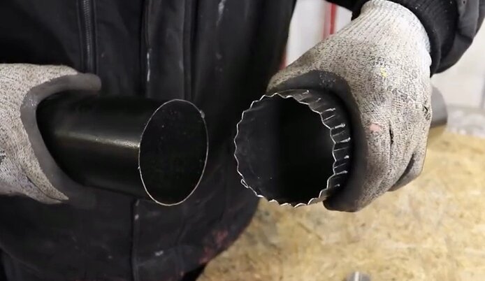 Так как разрезанная труба просто не войдет в следующую, они одинакового диаметра. Для их соединения требуется либо муфта, либо накатка.