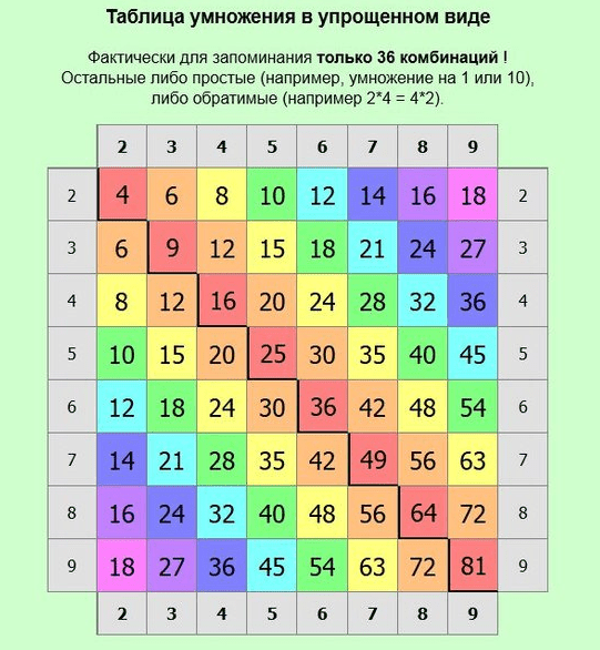 Детям будет легче воспринимать таблицу умножения не в виде столбиков, а в виде пифагоровой таблицы. Она выглядит вот так: