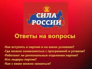 Мы решили ответить на самые распространенные их них: Как вступить в партию и на каких условиях? Для того, чтобы вступить в партию, Вам необходимо собственноручно заполнить заявление и выслать нам на электронную почту, после чего с Вами свяжутся. Членские взносы не предусмотрены. Где можно ознакомиться с программой и уставом? Мы считаем, что в России стоит построить государственную систему на пяти принципах: