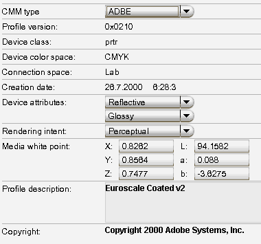 Рассмотрим внутренности профиля печати Euroscale Coated v2: