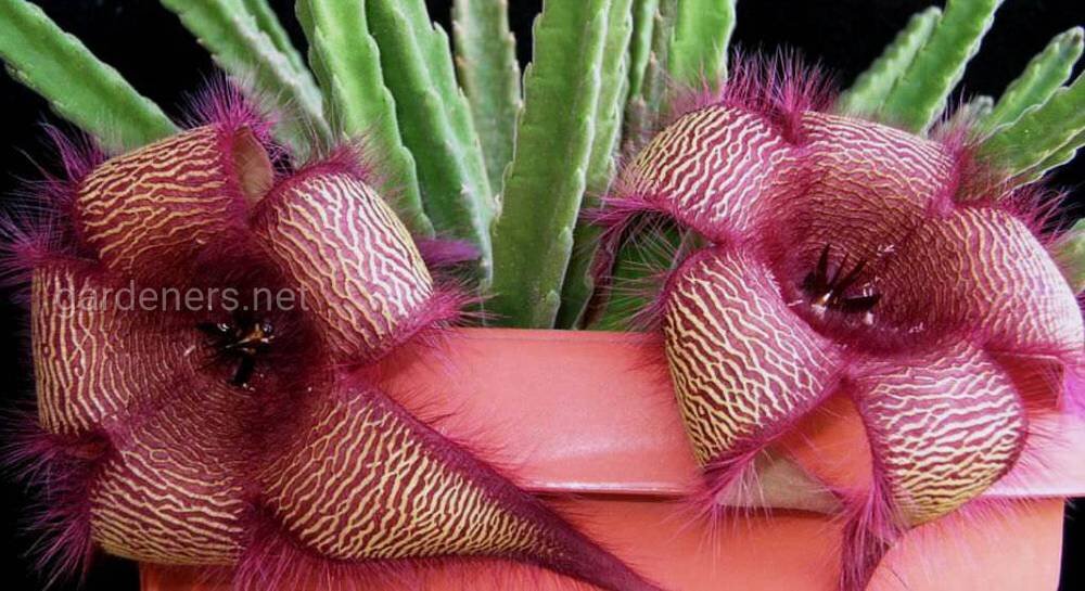 Существует много десятков видов стапелии, у каждого из которых цветы разного размера, стебли-гирлянды волосатые и нет. Есть также много гибридов Stapelia, если выращивать несколько видов вместе — можно получить случайные опыленные мухами гибридные семена.