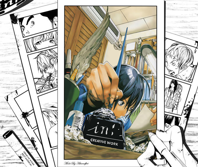 - Экономия времени. Манга выпускается еженедельно, поэтому в задачи автора входит не только придумать и реализовать интересный сюжет, но и сделать это в самые короткие сроки. Делать графику черно-белой – оптимальный выход: мангака не тратит время на раскрашивание. Часто последние приготовления происходят непосредственно перед запуском печати, куда листы из-под руки художника отправляются «с пылу, с жару».