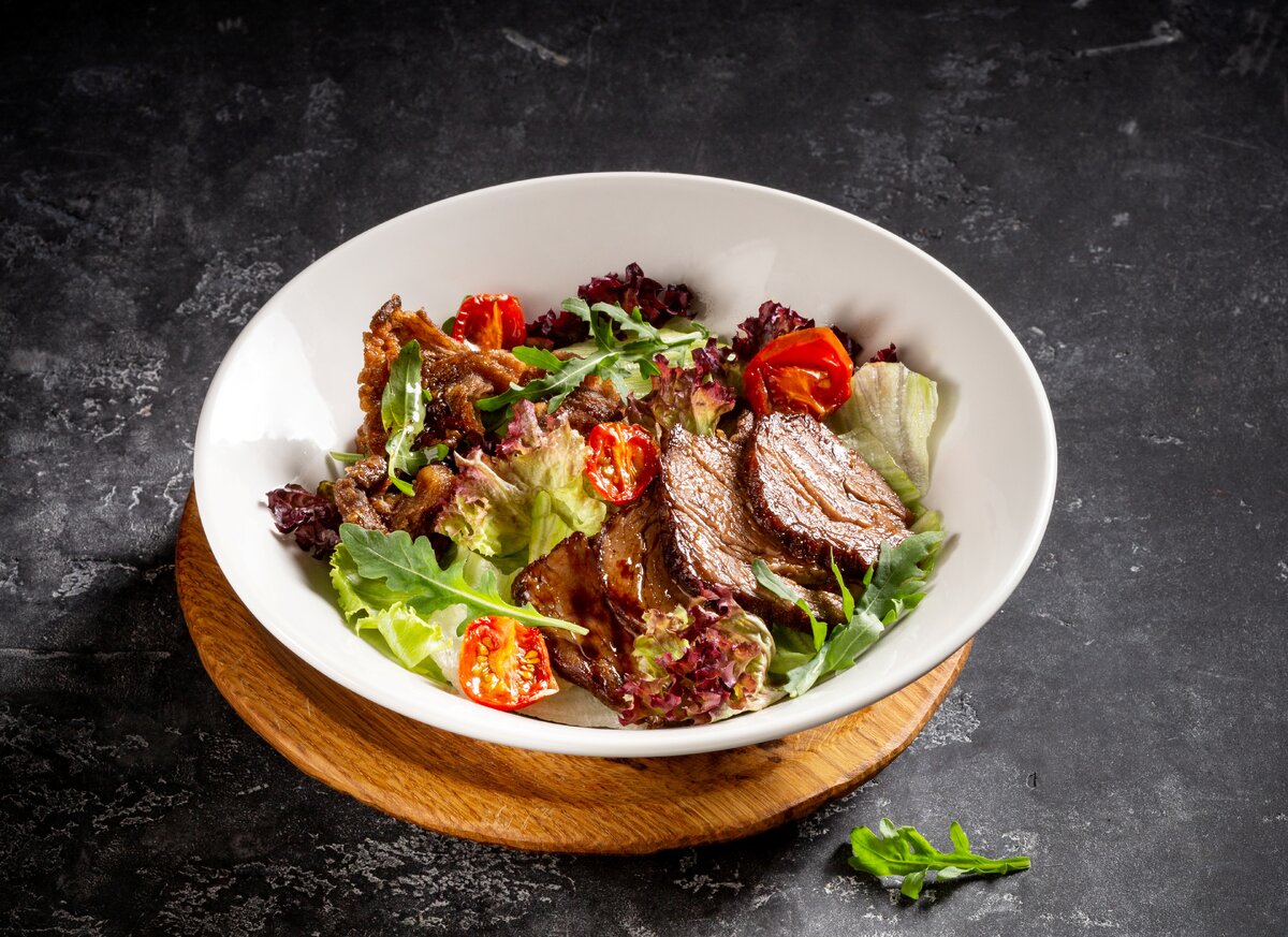 (рецепт на 4 порции по 250-270 гр.) Состав: Лук репчатый 250 гр Корень сельдерея 150 гр Морковь 250 гр Шампиньоны свежие 330 гр Говядина вырезка 700 гр Вино красное сухое 700 гр Розмарин свежий 5 гр Тимьян 5гр Чеснок 10 гр Масло растительное 20 гр Бульон говяжий сухой 10 гр Мука пшеничная 10 гр Масло сливочное 20 гр Бекон 100 гр обжаренный. Сахар 3-5 гр Соль 7 гр Вода 200 гр. Приготовление: Говяжью вырезку отчистить от пленки, нарезать кубиком 3х3 см. Замариновать в розмарине, тимьяне и вине (количество - половина от рецепта), мариновать 6-8 часов. Овощи нарезать кубиком 2х2 см, обжарить на подсолнечном масле до золотистого цвета. Отложить в сторону. Грибы, нарезаем на сектора и так же обжариваем до золотистой корочки. Маринованную говядину обжарить, переложить в кастрюлю (сотейник), залить кипятком и тушить до полуготовности под крышкой, примерно 10-15 мин. Добавить вино и тушить еще 10 мин. Вино должно выпарится, как понять, что вино выпарилось - до