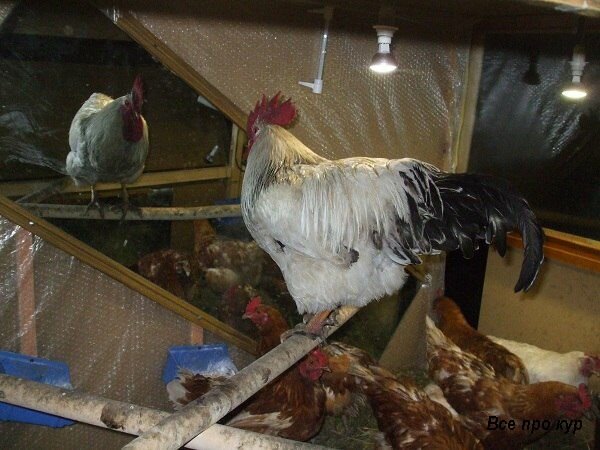 Если курятник маленький? Его проще обогреть. Обратите внимание, что скученность плохо влияет на кур. Приведу такой пример. Одну зиму мои несушки зимовали в "коммерческом киоске", построенном из ДСП щитов от старой мебели. 10 дамочек и петух умещались в коробе 1.5 х 1 х 1 м. Ютились, можно сказать. Торцевая сторона этого "дворца" была из двойного стеклопакета (опять же сделали раму и вставили старые стекла). Лампочка была на 150 Вт обычная для освещения, на ночь включали маленький инфракрасный обогреватель.