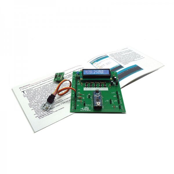 В качестве исполнительного устройства на плате предусмотрено место для установки жидкокристаллического символьного двухстрочного LCD-индикатора с подсветкой. На таком индикаторе можно отобразить достаточно информации как в обучающих целях, так и при применении набора в качестве законченного устройства. В обучающем пособии рассказывается, как выводить символьную информацию на дисплей, как заставить дисплей отображать русские и английские буквы одновременно. Индикатор используется практически во всех описанных в брошюре проектах.