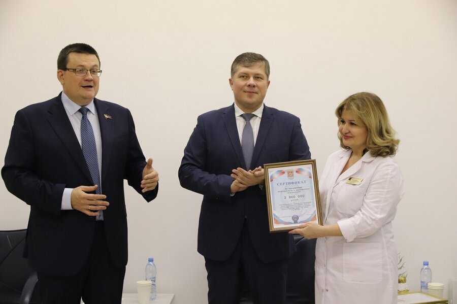 В минувший четверг министр здравоохранения Московской области Дмитрий Матвеев посетил МГКБ с рабочим визитом. Главным поводом его приезда в наш город стало вручение сертификата на приобретение автобуса для врачей Московского областного консультативно-диагностического центра для детей.