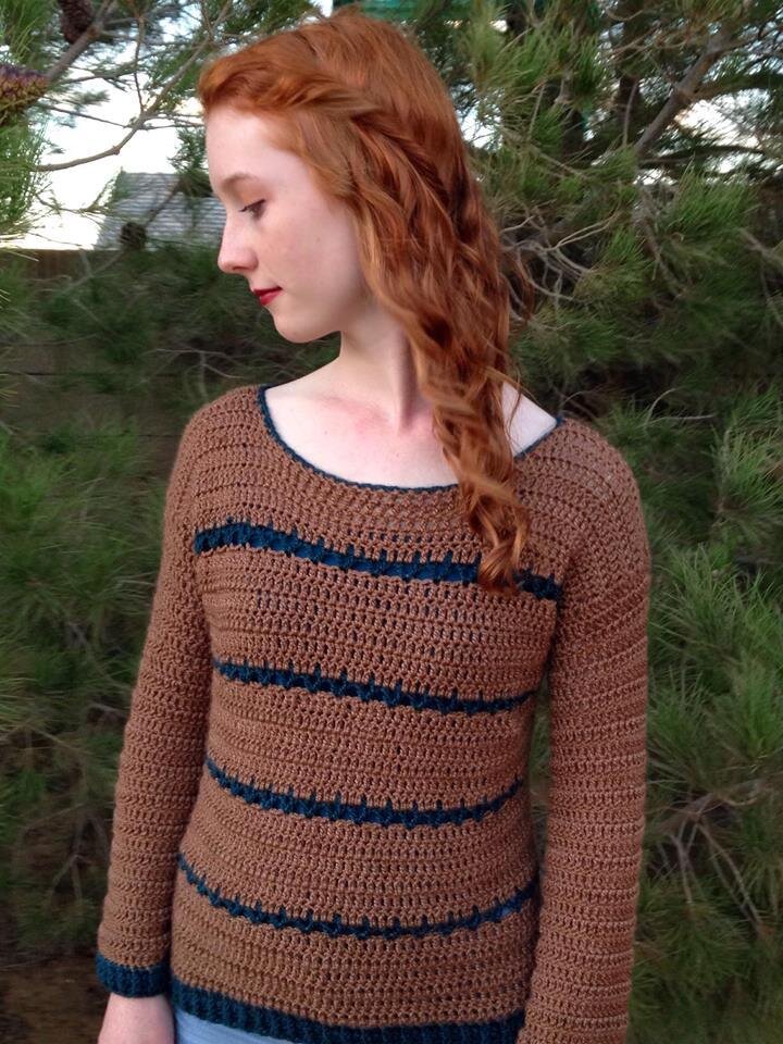 До невероятного простой джемпер, но очень мне понравился. Спортивный, повседневный... Вязать легко, потому что состоит практически из двух прямоугольников (горловина переда все же вывязана) и рукавов с прямой проймой. Нижнюю часть кофточки я бы все-таки связала по кругу или по кругу с поворотом. Прекрасное сочетание с джинсами и коричневыми ботинками... Здесь описание с мастер-классом по вязанию этого джемпера (на английском, но с гугл-переводчиком вполне понятно). Хотя можно просто взять модель за идею и использовать свои простые узоры (например, синей пряжей вязать скрещенные столбики).