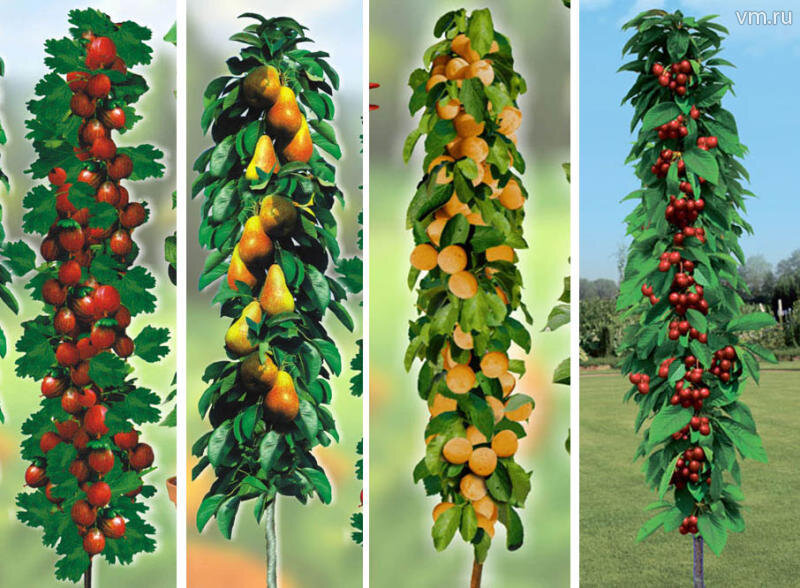 Изящные фруктовые деревья родом из Канады. Впервые – это были яблони. Относятся к карликовым сортам плодовых растений. Отличаются невысоким ростом, удлиненной кроной и расположенным под острым углом веткам. Кажется, что перед нами не дерево, а сплошной ствол с множеством плодов. Растение растет вверх само по себе и не нуждается в частой обрезке. В дальнейшем, селекционеры вывели подобный сорт у груш, слив, персиков.