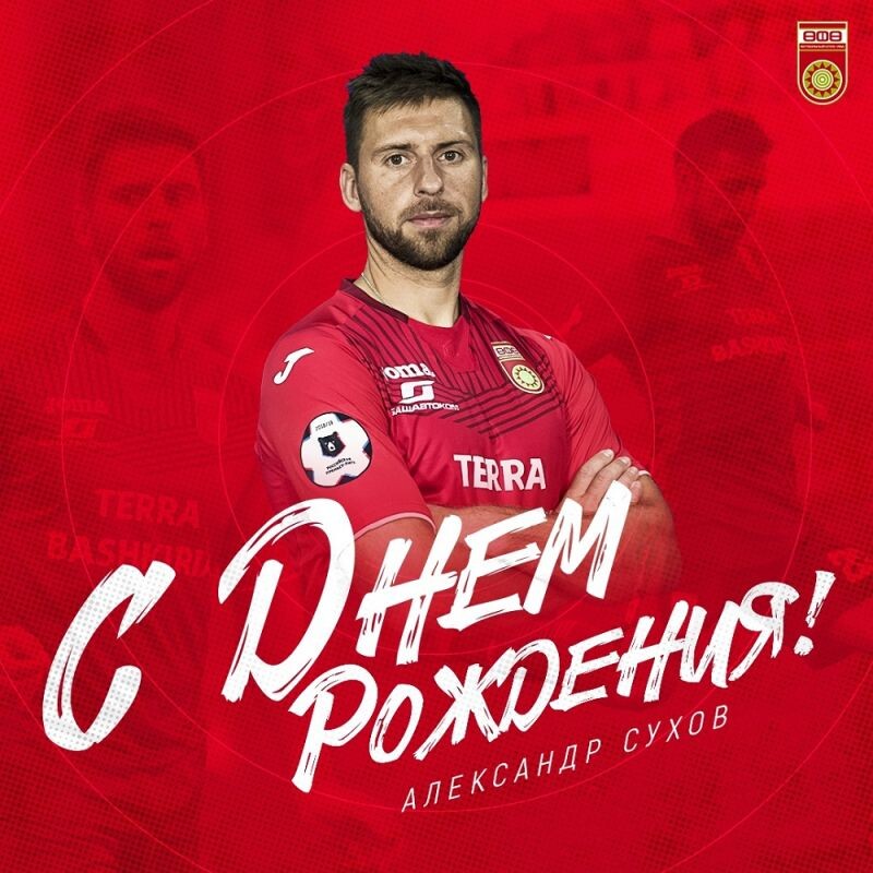 3 января исполняется 33 года защитнику ФК «Уфа» Александру Сухову. Футбольный клуб «Уфа» поздравляет Александра с Днем рождения и Новым годом! Желаем в 2019 году продолжать радовать болельщиков своей надежной и яркой игрой, здоровья, отсутствия травм и одержать еще множество побед в составе нашей команды! Александр Сухов перешел в нашу команду летом 2013 года из ярославского «Шинника». За это время защитник провел 121 матч в составе «Уфы» и забил 3 гола.
