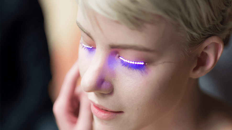 Мода будущего: интерактивные светодиодные ресницы На что только не пойдёшь ради того, чтобы быть модным в XXI веке. Художники, дизайнеры и стилисты проявляют верх изобретательности, чтобы впечатлить окружающих своими работами. В том числе используя в проектах различные технологические ухищрения. Яркий макияж сегодня уже никого не удивляет, поэтому техасский дизайнер Тьен Фам решил в буквальном смысле подсветить глаза своих моделей. Светодиодные накладки на ресницы получили название f.lashes (игра слов от «flash» — вспышка и «lashes» — ресницы).
