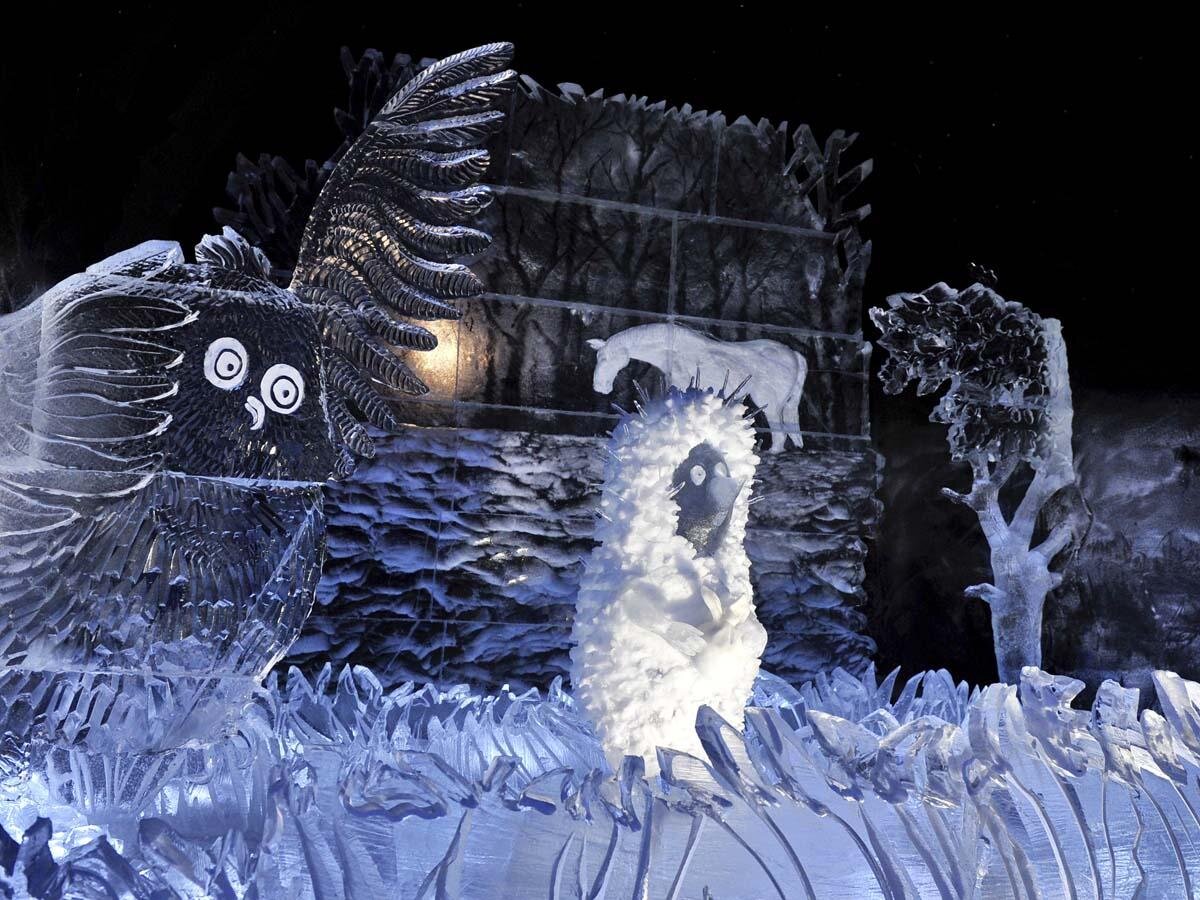 В Апатитах открылась Галерея ледовых скульптур Текст: Кабыш Зоя Это только второй сезон нового проекта экскурсионно-туристического центра «Снежная деревня», и нынче он был, прямо говоря, под угрозой: слишком долго не вставал лед на Имандре, да и снега было мало. Окончательное решение строить галерею приняли в середине декабря, когда зима наконец взяла свое и стало ясно, что удастся раздобыть нужное количество льда. Речь идет ни много ни мало о двух с половиной тысячах ледяных блоков! Как бы там ни было, команда ледовых и снежных скульпторов под руководством апатитчанина Валерия Липпонена и, конечно, самого Владимира Комягина, который всегда принимает самое деятельное участие в осуществлении своих проектов, ударно потрудилась, и вот галерея открыта! Напомним, что это экспозиция из ледяных скульптур, объединенных одной тематикой и установленных в закрытых снежных залах. Тема нынешнего года - любимые мультфильмы. - Идея коллективная, советом скульпторов так решили, - пояснил арт-директор