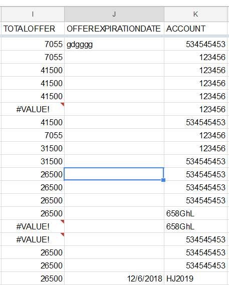 Я публикую информацию из формы на листах Google. После вставки (которая добавляет последний ряд), я хочу сделать пост-обработку сценария некоторых приложений. Прежде чем приступить к постобработке, я хочу заполнить пару пустых ячеек, которые не представлены в форме, включая столбец OFFEREXPIRATIONDATE, который должен быть установлен в: =TODAY()+7