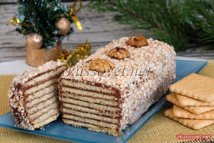 Рецепт приготовления торта из песочного печенья со сметанным кремом. В последнее время среди современных хозяек все больше набирают популярность десерты без использования духового шкафа, то есть без выпечки. Спешу поделиться невероятно нежным тортиком из песочного печенья со сметанно-шоколадным кремом. Песочное печенье в этом рецепте используется самое распространенное – юбилейное, а для украшения можно взять любое сухое, с небольшим содержанием сахара (диетическое отлично подходит). Для приготовления сметанного крема берется обычная магазинная сметана 20%. Сахар в крем добавляется по вкусу, например, для получения умеренно сладкого десерта достаточно половины стакана. Приготовленный торт перед подачей обязательно настаивается в холодильнике в течение нескольких часов. Как его украсить дело вкуса и вашей фантазии. Необходимые ингредиенты: 300 г печенья юбилейное (песочное); 60 г галетного или затяжного печенья; 300 г сметаны 20%; 100 г сахара; 30 г какао–порошка. Как приготовит