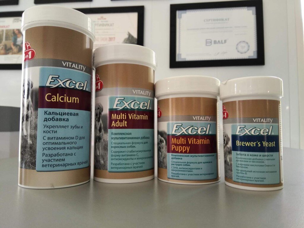 Кормовые добавки - это специальные комплексы, которые дополняют рацион животных, чтобы сделать его сбалансированным по отдельным элементам питания. Правильный выбор кормовой добавки поможет улучшить состояние кожи и шерсти, обеспечит защиту суставов, укрепит иммунитет и позволит сохранить здоровье питомца на долгие годы. 8in1 Эксель Кальций Кальциевая добавка необходима щенкам в период активного роста, собакам во время беременности и лактации. Благодаря поступлению в организм необходимого количества кальция, кости и зубы щенков формируются здоровыми и пропорционально развитыми. Дополнительно вводить в рацион кальций нужно собакам, которые содержатся на натуральных продуктах или получают корм с большим содержанием злаковых. Фосфор и витамин D, входящие в состав минерального комплекса, помогают организму полноценно усваивать кальций. Кальциевая добавка может применяться в сочетании со сбалансированными кормами. В упаковке: 155табл./470табл./880табл/1700табл. 8in1 Эксель Мультивитамины