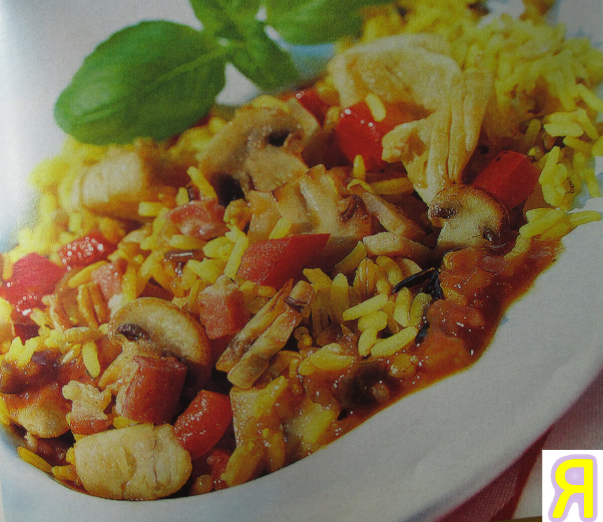 Для приготовления вам понадобится: Длиннозерный рис - 200г; Бекон (порезанный кубиком) - 100г; Шампиньоны - 500г; Красный сладкий перец - 2 стручка; Грудка индейки (филе) - 500г; растительное масло - 2 столовые ложки; Овощной бульон из кубика - 100мл; Сливочное масло - столовая ложка; Порошок карри (неострый) - чайная ложка; Соль, перец на ваш вкус; По желанию можно добавить базилик. Приготовление: Шаг 1 Рис отварите в слабо подсоленной воде. Шаг 2 Шампиньоны почистить и нарезать пластинками. Стручки перца разрезать пополам и, удалив семена, нарезать кубиками. Шаг 3 Помойте мясо, высушите и порежьте на средние кусочки. На сковороде с антипригарным покрытием раскалите растительное масло и обжарьте в нём мясо с беконом, огонь сделайте среднем и обжаривайте около пяти минут до аппетитной корочки. Шаг 4 Овощным бульоном из кубика залейте мясо и добавьте сладкий перец. Минут через пять добавьте к мясу грибы. Доведите до кипения, помешивая и, потушите всё содержимое ещё пару минут, затем доб