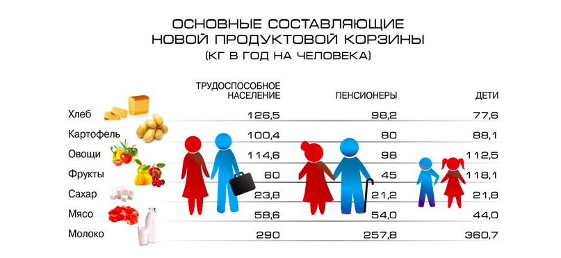 Прожиточный минимум - это минимальное количество денежных средств, которые нужны человеку для удовлетворения основных потребностей и поддержания своего здоровья. Размер прожиточного минимума включает список определенных продуктов питания, промышленные товары/услуги, медицинскте услуги Прожиточный минимум включает два параметра: Как каждая страна определяет размер прожиточного минимума? Самым эффективным методом определения прожиточного минимума является денежное выражение потребительской корзины. Потребительская корзина состоит из продовольственной, непродовольственной частей и услуг. В Российской Федерации установление размера и состава корзины происходит 1 раз в 5 лет. Это, кстати, реже, чем в развитых странах Европы. В Англии данный пересмотр происходит 1 раз в год Состав потребительской корзины: Состав каждого компонента корзины продуктов мал весом. Так, заложено в день всего 160 граммов фруктов, две столовые ложки сахара. Набор, входящий в корзину, отличается на разных т