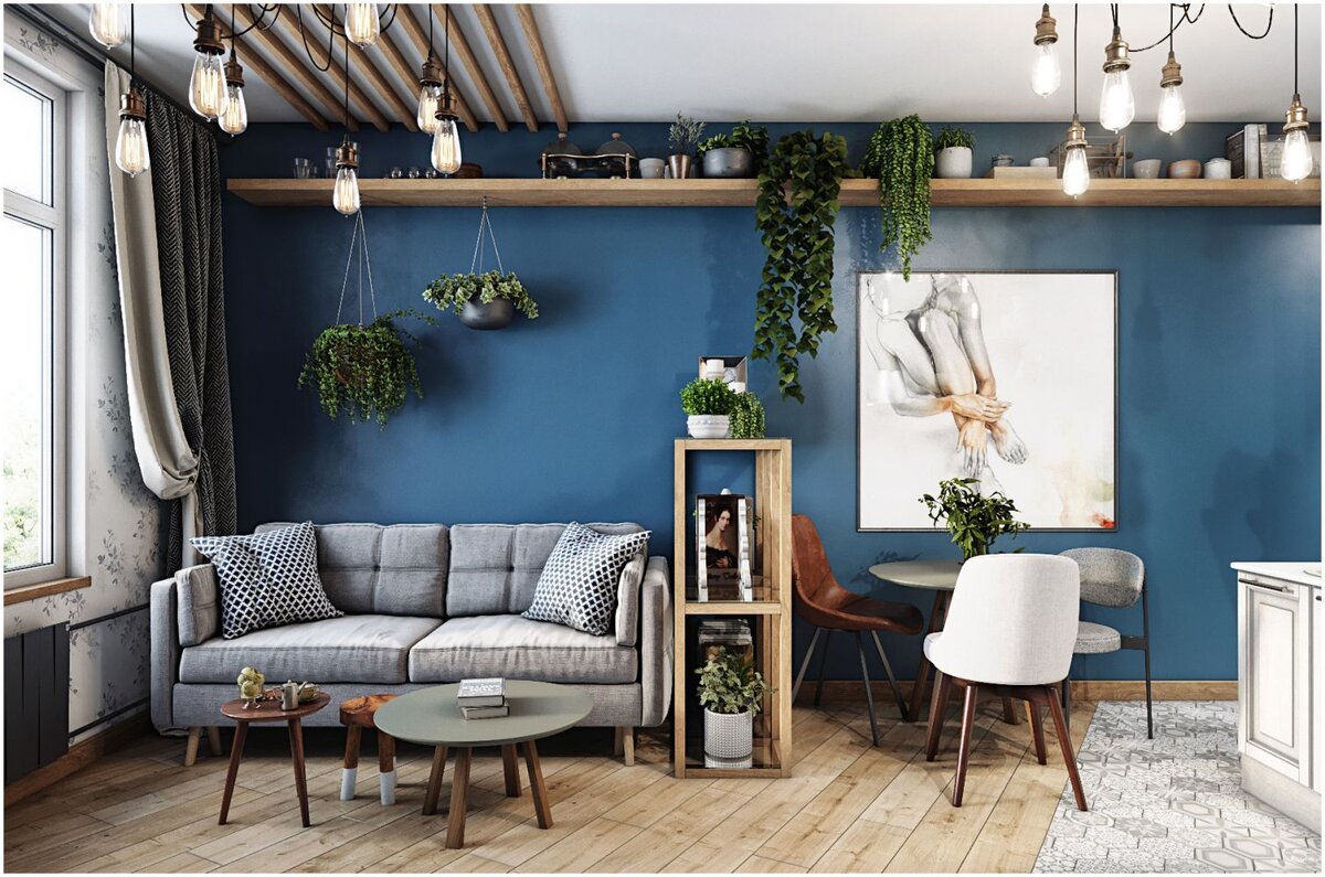 Оригинальный дизайн для молодого человека с использованием натуральных материалов и множества зеленых растений. Одна их особенностей проекта — использование глубокого синего цвета, который прекрасно сочетается с деревянными элементами и растениями, выглядит стильно и при этом нет ощущения что интерьер слишком темный. Дизайн — ToTaste Studio. 👍 Ставьте лайк, если хотите видеть больше таких записей