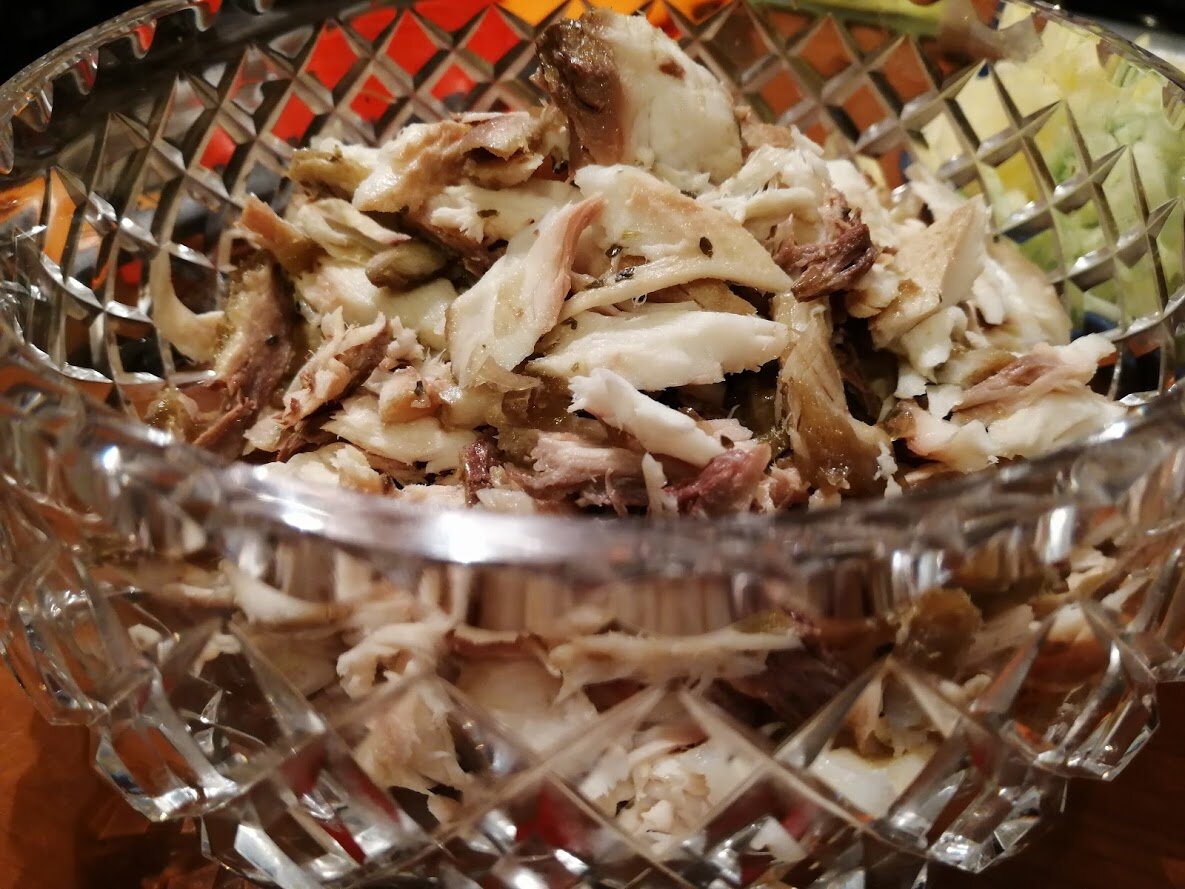 Обычно я этот салат делаю не специально, а когда осталась рыба. Неважно, вареная или запеченная, например. А может и жареная.