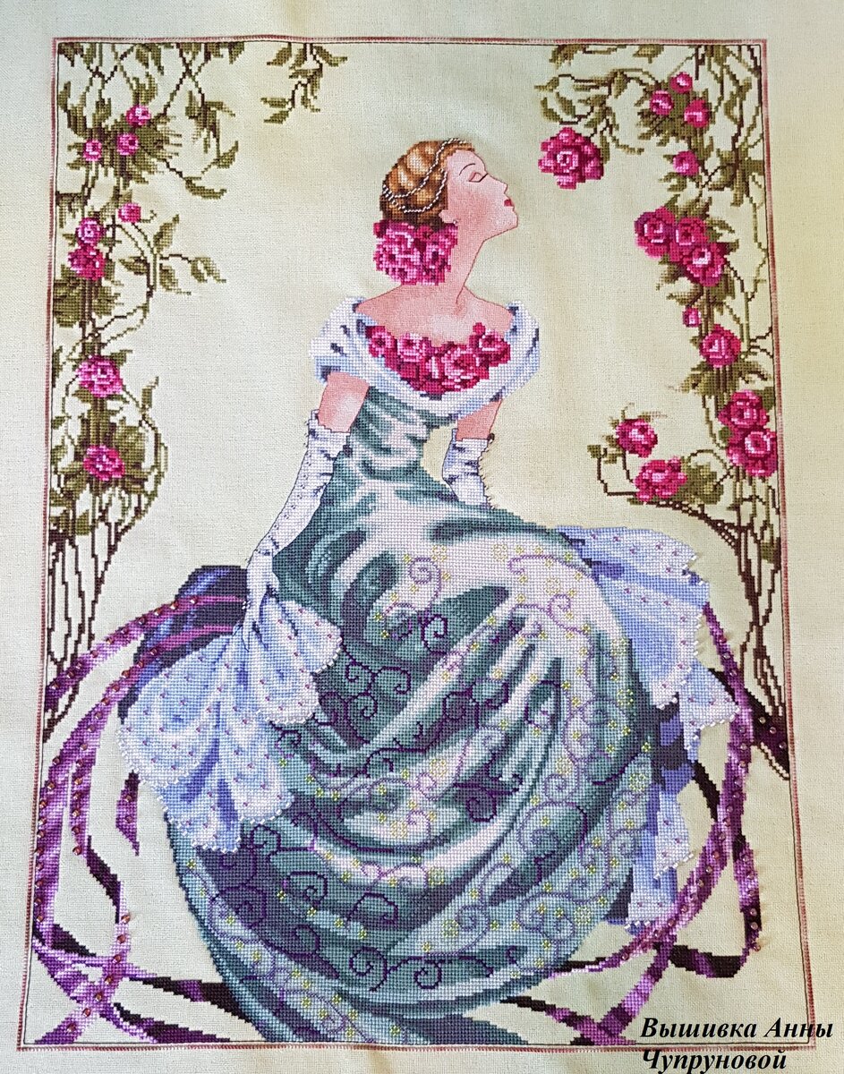 Воооот! Великолепная и огромная вышивка :) Здесь я ничего практически не меняла, отшила только тело и лицо петитом :) Всё остальное по схеме. Здесь я хочу добавить, что бисер я вышиваю по ходу дела той же ниточкой, что и соседние клеточки. Так получается гармоничнее, нет просветов, особенно когда используется бисер 15 размера. Исключение составляют большие бусины. Их вышиваю в самую последнюю очередь. Это и понятно, они крупные. Ну что ж, наслаждайтесь фото моей красавицы! О своей красавице так же есть видео на Ютюбе :) Ссылочка в профиле!