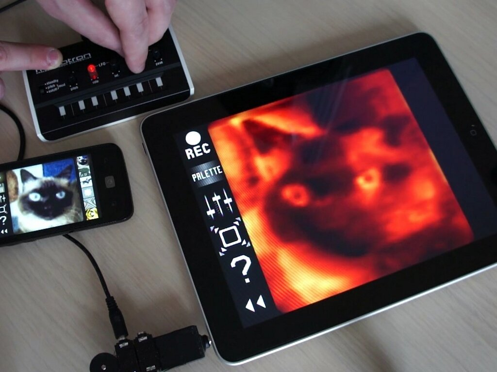 Знаете ли вы, что видеосигнал можно услышать и передать по аудио кабелю или по воздуху, принимая микрофоном? Для этого потребуется: 1) небольшое разрешение картинки (~64x64) и/или низкая частота кадров (~10 fps); 2) приемник и передатчик - например, два телефона или планшета под управлением iOS/Android с установленным приложением PixiVisor. PixiVisor - программа для Windows, macOS, Linux, iOS и Android. Состоит из двух частей: передатчик (Transmitter) и приемник (Receiver). Передатчик загружает картинку (JPG, PNG, GIF), анимацию (GIF) или видеопоток с камеры и начинает вещать, на лету конвертируя каждый кадр в звук пиксель за пикселем (построчное сканирование). Выглядит это примерно так: на экране играет анимация, а из динамиков доносится не очень приятное на слух жужжание. Приемник выполняет обратное преобразование - звук, принятый через микрофон или линейный вход, превращается в изображение, которое мы видим на экране. Изображение черно-белое, но для него можно назначить одну из