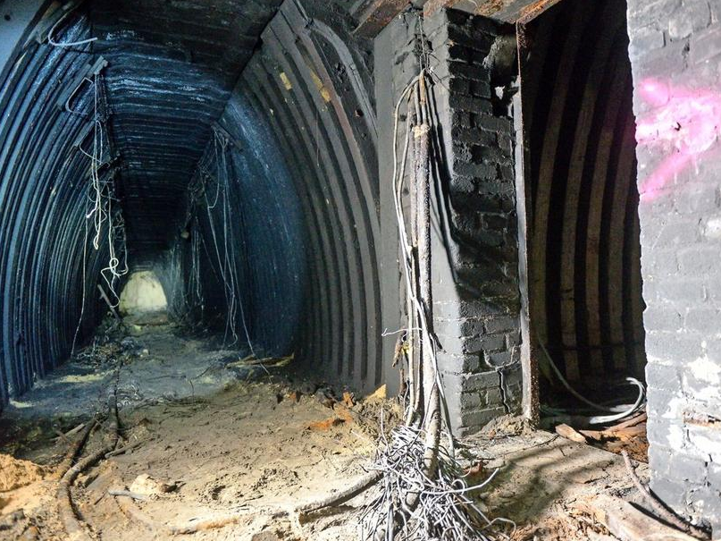 Оказалось, что речь идет не о большом сводчатом зале (так обычно строили подземные бомбоубежища), а о расходящихся в разные стороны штольнях высотой примерно 2 м 30 см и шириной полтора метра. Они прорыты на глубине 15 метров, укреплены цельными бетонными блоками, соединенными между собой. Строительство было явно не завершено: исследователи обнаружили протянувшиеся на несколько десятков метров штабели кирпичей, облицовочную плитку и так далее.