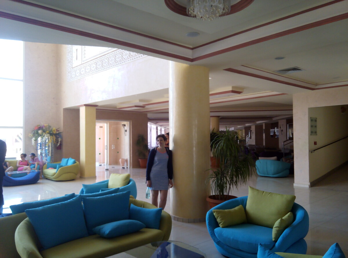Club Lella Meriam 4 - один из самых неоднозначных отелей в моей практике. На меня он произвел вполне благоприятное впечатление. Находится в регионе Зарзис, там очень красивое море. При этом один из редких отелей, из которых можно выйти и прогуляться по торговым палаткам. Это не рынок в полном понимании этого слова. Всего 5-7 магазинчиков и аптека, но они есть. Рядом с тем же Zephir & SPA 4* вообще ничего нет. Club Lella Meriam 4 - розовая ленточка номеров буквой П. Не первая береговая, но до моря буквально 7 минут неспешным шагом от бассейна, засекали. Номера Club Lella Meriam 4 приличные, большие, с хорошим санузлом, ванной с джакузи. На территории бассейны, есть небольшая детская горка. Маленькая, интересна будет детям лет семи восьми, не старше. Хотелось бы конечно, более зеленую территорию, но визуально - это единственный минус, который отметили при осмотре. В ресторане кушали - питание вполне приличное, не слишком большой выбор, но все съедобное. Вполне соответств